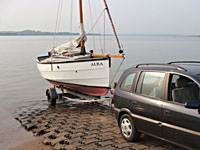 Trailing – the Shrimper can be winched (or floated) onto a road trailer which makes it easy to lift out at the end of the season, store ashore over the winter and relaunch in the spring. Many owners tow these “pocket cruisers” to new sailing grounds for their holidays; a flexibility which larger yachts lack. They can be towed by a reasonably powerful estate car or a 4x4 and should stow in a large garage or be can kept outside under a substantial boat cover. Dimensions and towing weights are on the specification page.