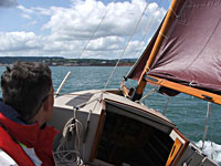 Looks – the traditional “wooden gaffer” look; tan sails, gaff rig, bowsprit and clinker lines give the Cornish Shrimper unmistakable character that stands out from the “white boat” masses. But it’s not just about appearance; the design has its origins in the centuries old working boats of the West Country. This spirit and style is epitomised by the Old Gaffers Association at www.oga.org.uk